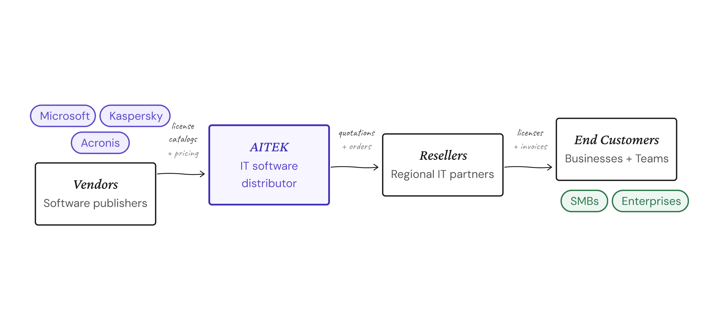 A single person managing the full distribution chain across AITEK’s African consumer base.